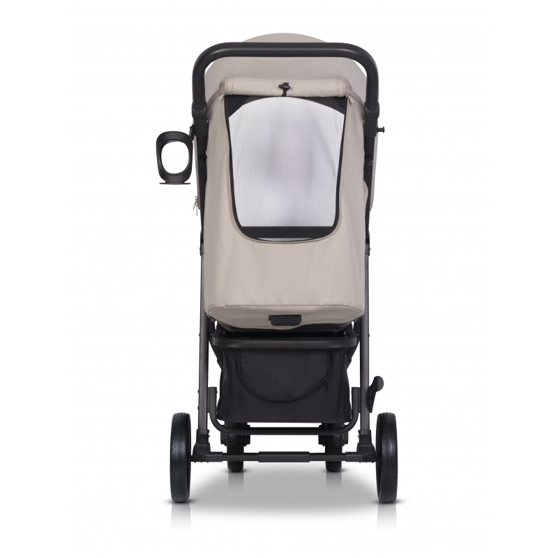 Stogė nuo saulės yra pakabinta aukštai virš vežimėlio atlošo, todėl „FLEX“ gali lengvai sutalpinti vaiką, sveriantį iki 22 kg. Didelė papildoma stogelio dalis yra paslėpta po užtrauktuku. Ją atidarius, stogelį galima palenkti į priekį, beveik visiškai uždengiant vaiką. Nepamiršome ir langelio, kad galėtumėte stebėti vaiką. Stogelio reguliavimo mechanizmas yra patogus ir tylus, užtikrinantis stabilią jo padėtį (vėjas nesulankstys stogelio). Vežimėlio gale yra didelė, užtraukiama ventiliacijos anga ir praktiška kišenė smulkiems daiktams.