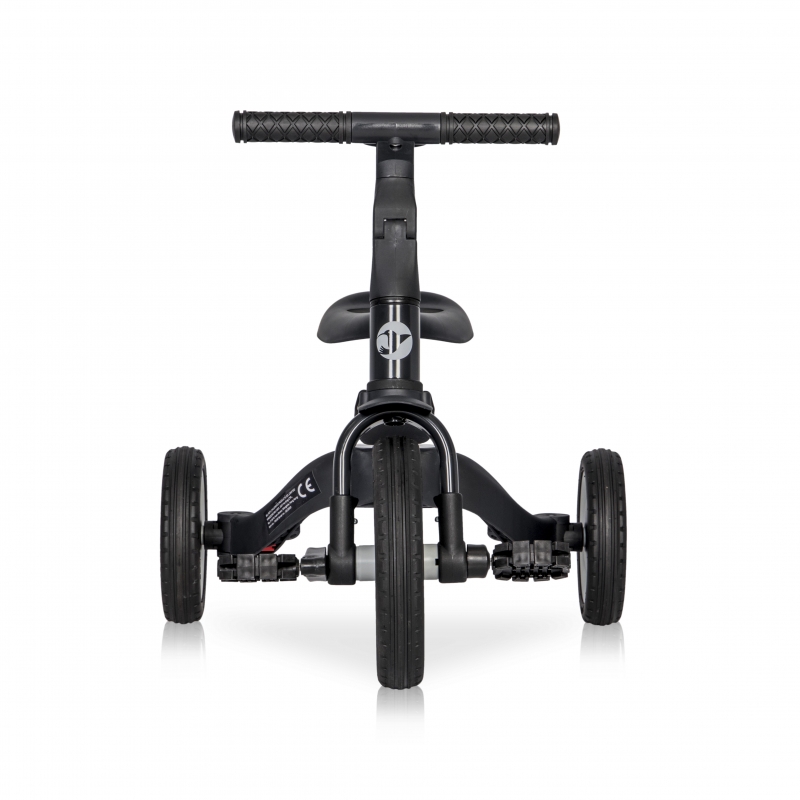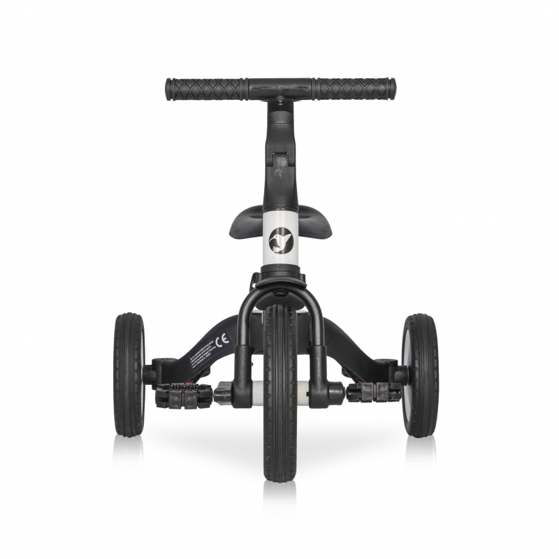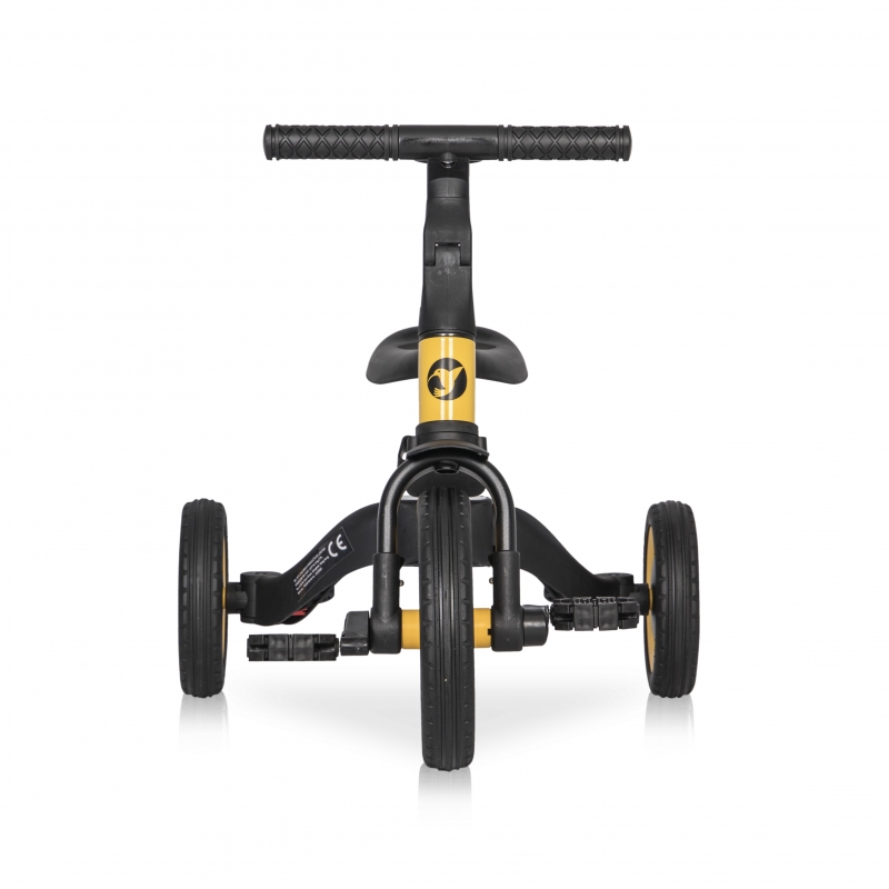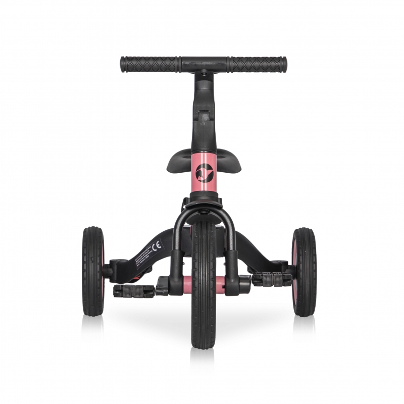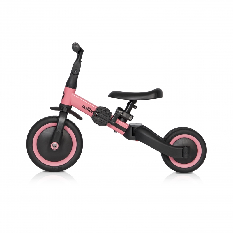 Balansinis dviratukas – 3–4 metų vaikams. Dėl inovatyvios patentuotos sistemos, paspaudus vos 3 mygtukus ir neišmontuojant jokių elementų, triratuką galite paversti praktišku lavinamuoju balansiniu dviračiu. Tiesiog sujunkite galinius ratus į vieną stabilų dvigubą ratą ir išardykite pedalus. Pedalai išardomi vos vienu mygtuko paspaudimu, nereikia jokių įrankių.